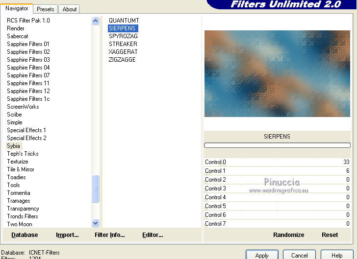 Effets>Modules Externes>Filters Unlimited 2.0 - Sybia - Sierpens, par défaut.