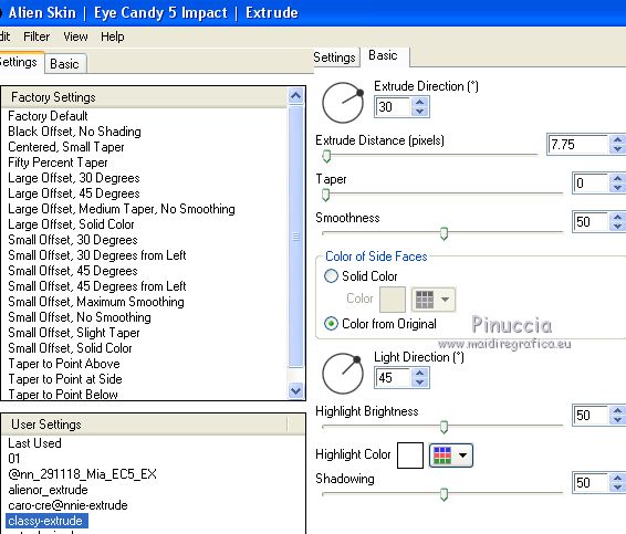 22. Effets>Modules Externes>Alien Skin Eye Candy 5 Impact - Extrude.