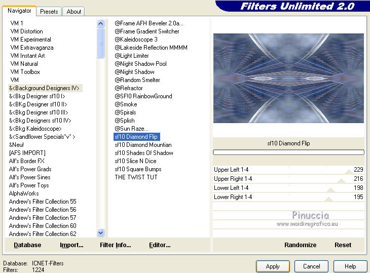 15. Effets>Modules Externes>Filters Unlimited 2.0 - &<Background Designers IV> - sf10 Diamond Flip.