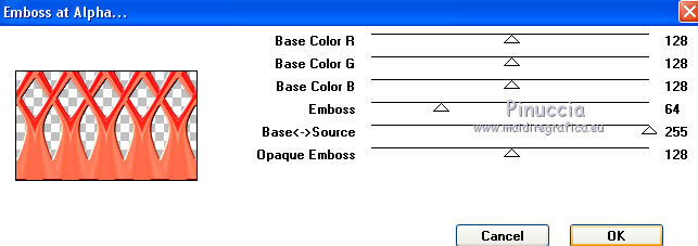 12. Effets>Modules Externes>Mura's Seamless - Emboss at Alpha, par défaut.