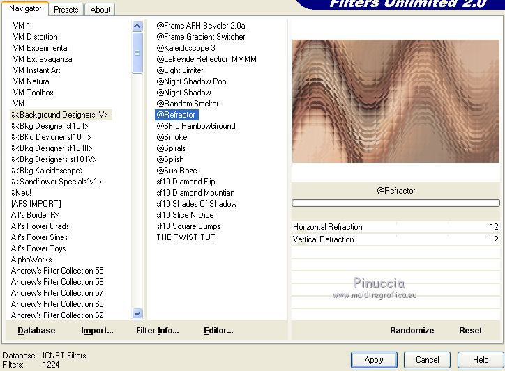 Effets>Modules Externes>Filters Unlimited 2.0 - &<Background Designers IV> - @Refractor.