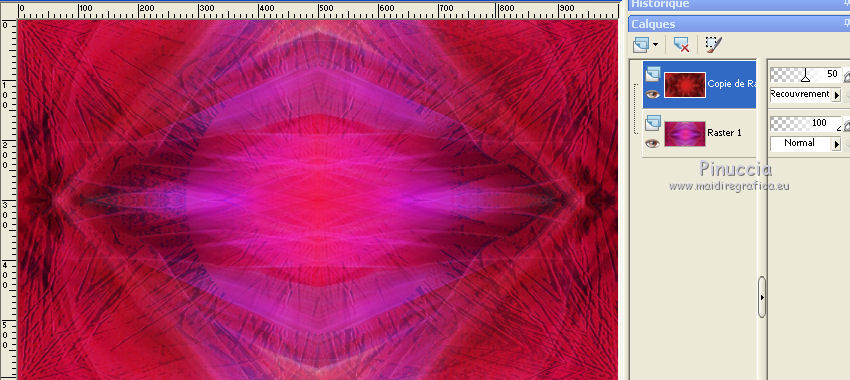 Placer le calque en mode Recouvrement et réduire l'opacité à 50%