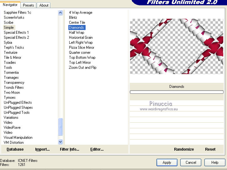 11. Effets>Modules Externes>Filters Unlimited 2.0 - Simple - Diamonds