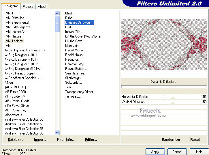 13. Effets>Modules Externes>Filters Unlimited 2.0 - VM Toolbox - Dynamic Diffusion