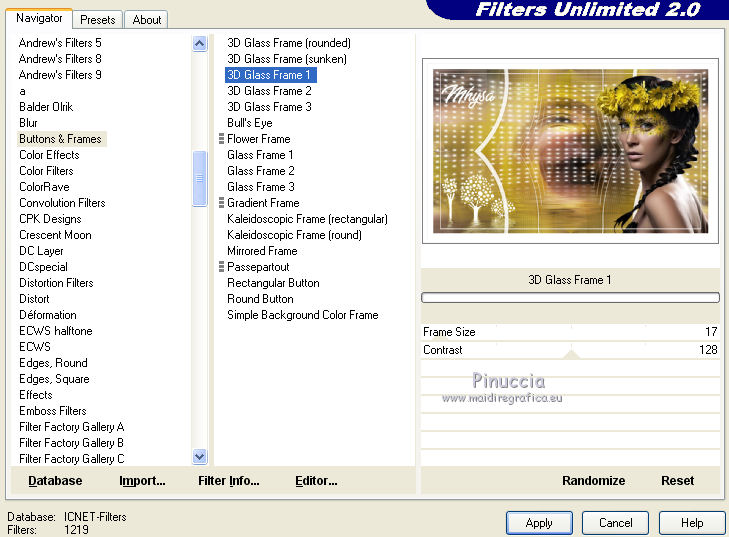 20. Effets>Modules Externes>Filters Unlimited 2.0 - Buttons and Frames - 3D Glass Frame 1.