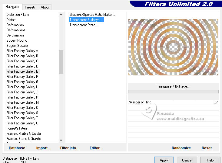 8. Effets>Modules Externes>Filters Unlimited 2.0 - Filter Factory Gallery E - Transparent Pizza.