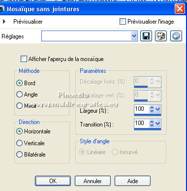 3. Effets>Effets d'image>Mosaïque sans jointures, par défaut.