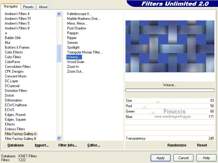 Effets>Modules Externes>Filters Unlimited 2.0 - Filter Factory Gallery A - Weave, par défaut