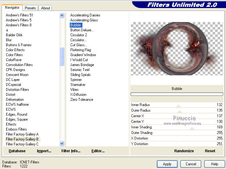 3. Effets>Modules Externes>Filter Factory Gallery B - Bubble, par défaut.