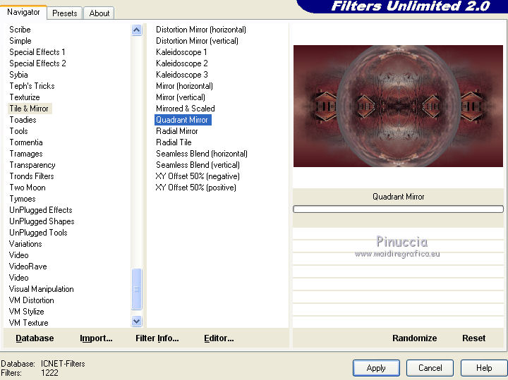 7. Effets>Modules Externes>Filters Unlimited 2.0 - Tile & Mirror - Quadrant Mirror.