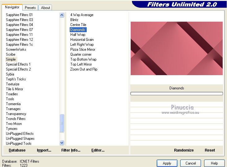 2. Effets>Modules Externes>Filters Unlimited 2.0 - Simple - Diamonds