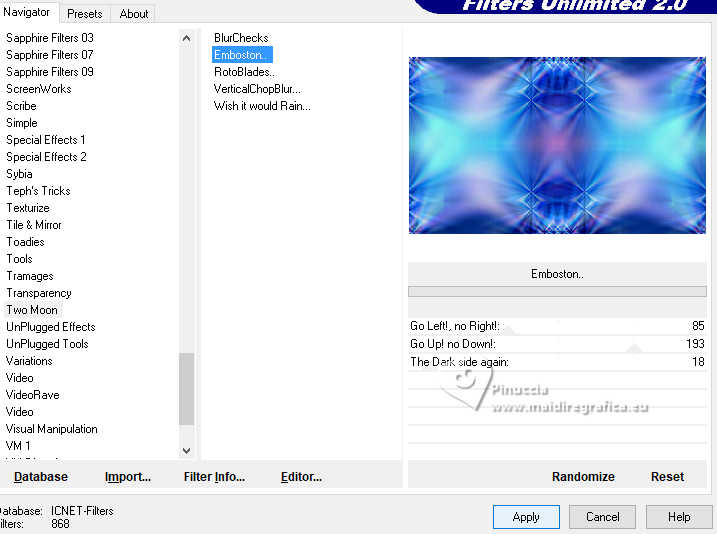 7. Effets>Modules Externes>Filters Unlimited 2.0 - Two Moon - Emboston, par défaut.