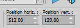 Placer Position horiz.: 513,00 et Position vert.: 129,00.