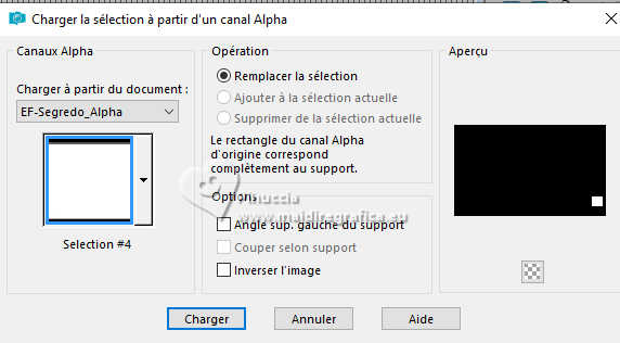Sélections>Charger/Enregistrer une sélection>Charger à partir d'un canal alpha.