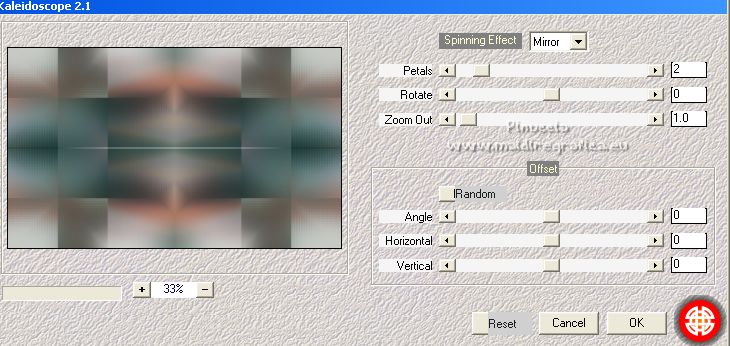 19. Effets>Modules Externes>Graphics Plus - Vertical Mirror, par défaut.