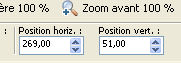 Placer Position horiz.: 269,00 et Position vert.: 51,00.