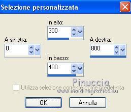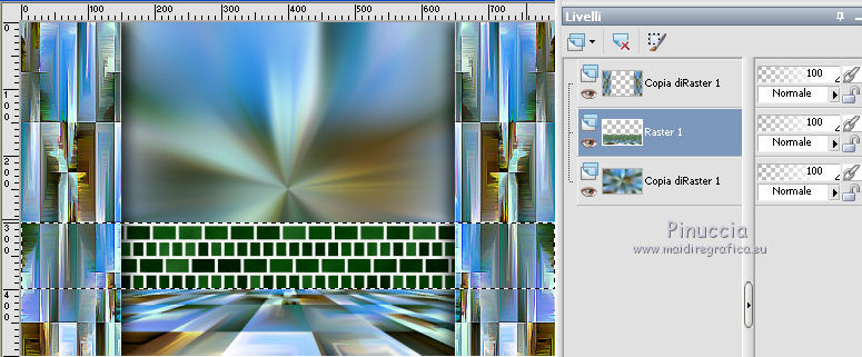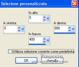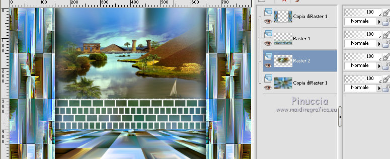 qui puoi trovare qualche risposta ai tuoi dubbi. Se l'argomento che ti interessa non è presente, ti prego di segnalarmelo. Questo tutorial è stato realizzato con PSPX8 e tradotto con PSPX3 e PSPX, ma può essere realizzato anche con le altre versioni di PSP. Dalla versione X4, il comando Immagine>Rifletti è stato sostituito con Immagine>Capovolgi in orizzontale, e il comando Immagine>Capovolgi con Immagine>Capovolgi in verticale. Nelle versioni X5 e X6, le funzioni sono state migliorate rendendo disponibile il menu Oggetti. Con la nuova versione X7, sono tornati Rifletti>Capovolgi, ma con nuove varianti. Vedi la scheda sull'argomento qui traduzione in inglese/english translation qui/here Le vostre versioniOccorrente: Materiale qui Per i tubes grazie Colybrix e ValyScrapPassion (in questa pagina trovi i links ai siti dei creatori di tubes) Filtri: se hai problemi con i filtri, consulta la mia sezione filtri qui Filters Unlimited 2.0 qui Mehdi - Sorting Tiles, Grain Natural 2.0 qui Alien Skin Eye Candy 5 Textures qui Mura's Meister - Perspective Tiling qui Mura's Meister - Cloud qui Transparency - Eliminate black qui I filtri Transparency si possono usare da soli o importati in Filters Unlimited (come fare vedi qui) Se un filtro fornito appare con questa icona ![]() non esitare a cambiare modalità di miscelatura e opacità secondo i colori utilizzati. Non dimenticare di cancellare le firme sui tubes. 1. Apri una nuova immagine trasparente 800 x 500 pixels. Effetti>Plugins>Mura's Meister - Cloud. ![]() Cambia eventualmente il colore di sfondo (BG), secondo il colore del cielo del tuo paesaggio. Ricorda che il risultato di questo effetto è casuale; se vuoi cambiare l'aspetto delle nuvole, clicca sulla finestra di anteprima, finché non vedi il risultato che preferisci. ![]() ![]() 2. Selezione>Seleziona tutto. Apri il misted del paesaggio e vai a Modifica>Copia. Torna al tuo lavoro e vai a Modifica>Incolla nella selezione. Selezione>Deseleziona. 3. Effetti>Effetti di immagine>Motivo unico, con i settaggi standard. ![]() Effetti>Plugins>Mehdi - Sorting Tiles. ![]() Livelli>Duplica. 4. Tasto K sulla tastiera per attivare lo strumento Puntatore ![]() in modalità Scala ![]() tira il nodo centrale destro verso sinistra, fino a 150 pixels. ![]() Effetti>Effetti di bordo>Aumenta di più. 5. Effetti>Effetti 3D>Sfalsa ombra, colore nero. ![]() Livelli>Duplica. Immagine>Rifletti. Livelli>Unisci>Unisci giù. 6. Attiva il livello inferiore, raster 1. Livelli>Duplica. Regola>Sfocatura>Sfocatura radiale. ![]() Livelli>Disponi>Sposta giù. 7. Attiva nuovamente il livello Raster 1. Effetti>Plugins>Mura's Meister - Perspective Tiling. ![]() 8. Attiva lo strumento Selezione ![]() (non importa il tipo di selezione impostato, perchè con la selezione personalizzata si ottiene sempre un rettangolo) clicca sull'icona Selezione personalizzata ![]() e imposta i seguenti settaggi. ![]() Effetti>Plugins>Alien Skin Eye Candy 5 Textures - Brick Wall. ![]() Risultato ![]() Effetti>Plugins>Transparency - Eliminate Black. Risultato ![]() 9. Selezione personalizzata ![]() ![]() La nuova selezione sostituirà la precedente ![]() Livelli>Nuovo livello raster. Modifica>Incolla nella selezione (il misted del paesaggio è sempre in memoria). Selezione>Deseleziona. Livelli>Disponi>Sposta giù. ![]() 10. Attiva il livello superiore. Apri il tube homme61-coly e vai a Modifica>Copia. Torna al tuo lavoro e vai a Modifica>Incolla come nuovo livello. Immagine>Ridimensiona, al 65%, tutti i livelli non selezionato. Sposta il tube a sinistra.Effetti>Effetti 3D>Sfalsa ombra, colore nero. ![]() 11. Apri il tube Egypte38-coly e vai a Modifica>Copia. Torna al tuo lavoro e vai a Modifica>Incolla come nuovo livello. Immagine>Ridimensiona, al 30%, tutti i livelli non selezionato. Regola>Messa a fuoco>Metti a fuoco. Immagine>Rifletti. Sposta il tube a destra.Effetti>Effetti 3D>Sfalsa ombra, colore nero. ![]() 12. Livelli>Unisci>Unisci tutto. Modifica>Copia. 13. Selezione>Seleziona tutto. Immagine>Aggiungi bordatura, 50 pixels, simmetriche, colore bianco. Selezione>Inverti. Modifica>Incolla nella selezione. Regola>Sfocatura>Sfocatura gaussiana - raggio 20. ![]() 14. Effetti>Plugins>Mehdi - Grain Natural 2.0 ![]() 15. Selezione>Modifica>Seleziona bordature selezione. ![]() Imposta il colore di primo piano con il colore bianco. Riempi la selezione con il colore bianco.16. Selezione>Seleziona tutto. Selezione>Modifica>Contrai - 50 pixels. Selezione>Inverti. Effetti>Effetti 3D>Sfalsa ombra, con i settaggi precedenti. ![]() Ripeti l'Effetto Sfalsa ombra, cambiando verticale e orizzontale -10. Selezione>Deseleziona. 17. Apri il tube titre e vai a Modifica>Copia. Torna al tuo lavoro e vai a Modifica>Incolla come nuovo livello. Posiziona il testo dove preferisci, o vedi il mio esempio.18. Firma il tuo lavoro su un nuovo livello. Livelli>Unisci>Unisci tutto e salva in formato jpg. Versione con tubes di DBK Katrina; il paesaggio è mio ![]() Le vostre versioni Grazie ![]() Puoi scrivermi se hai problemi o dubbi, o trovi un link che non funziona, o soltanto per un saluto. 3 Ottobre 2020 |