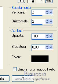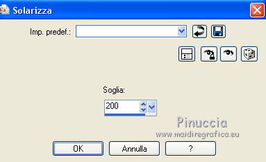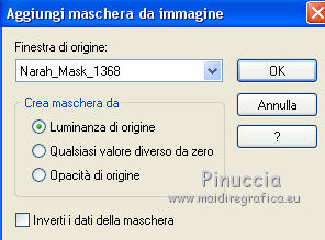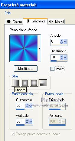qui puoi trovare qualche risposta ai tuoi dubbi. Se l'argomento che ti interessa non è presente, ti prego di segnalarmelo. Questo tutorial è stato realizzato con PSPX8 e tradotto con PSPX3 e PSPX, ma può essere realizzato anche con le altre versioni di PSP. Dalla versione X4, il comando Immagine>Rifletti è stato sostituito con Immagine>Capovolgi in orizzontale, e il comando Immagine>Capovolgi con Immagine>Capovolgi in verticale. Nelle versioni X5 e X6, le funzioni sono state migliorate rendendo disponibile il menu Oggetti. Con la nuova versione X7, sono tornati Rifletti>Capovolgi, ma con nuove varianti. Vedi la scheda sull'argomento qui traduzione in inglese/english translation qui/here Le vostre versioniOccorrente: Materiale qui Grazie per i tubes ValyScrapPassion e Colybrix, e per la maschera Narah. (in questa pagina trovi i links ai siti dei creatori di tubes) Filtri: se hai problemi con i filtri, consulta la mia sezione filtri qui Filters Unlimited 2.0 qui Graphics Plus - Cross Shadow qui I filtri Graphics Plus si possono usare da soli o importati in Filters Unlimited (come fare vedi qui) Se un filtro fornito appare con questa icona ![]() non esitare a cambiare modalità di miscelatura e opacità secondo i colori utilizzati. Nelle ultime versioni di PSP non c'è il gradiente di primo piano/sfondo (Corel_06_029) Puoi usare i gradienti delle versioni precedenti. Trovi qui i gradienti Corel X. Non dimenticare di cancellare le firme sui tubes. Apri le maschere in PSP e minimizzale con il resto del materiale. Imposta il colore di primo piano con il colore scuro #4d22b3, e il colore di sfondo con il colore chiaro #00c7fc. ![]() Passa il colore di primo piano a Gradiente di primo piano/sfondo, stile Radiale. ![]() 1. Apri una nuova immagine trasparente 800 x 500 pixels, e riempila con il gradiente.Regola>Sfocatura>Sfocatura gaussiana - raggio 10. ![]() 2. Apri il tube del paesaggio e vai a Modifica>Copia. Torna al tuo lavoro e vai a Modifica>Incolla come nuovo livello. Effetti>Effetti di immagine>Motivo unico, con i settaggi standard. ![]() Effetti>Effetti di immagine>Motivo unico, Fianco a fianco. ![]() Effetti>Effetti di immagine>Motivo unico . ![]() 3. Effetti>Effetti tecniche di disegno>Pennellate. ![]() Effetti>Effetti artistici>Solarizza. ![]() 4. Modifica>Incolla come nuovo livello (il tube del paesaggio è sempre in memoria. Immagine>Ridimensiona, al 75%, tutti i livelli non selezionato. 5. Imposta il colore di primo piano con il colore bianco. Livelli>Nuovo livello raster. Riempi il livello con il colore bianco.Livelli>Nuovo livello maschera>Da immagine. Apri il menu sotto la finestra di origine e vedrai la lista dei files aperti. Seleziona la maschera Narah_Mask_1368 ![]() Effetti>Effetti di bordo>Aumenta. Livelli>Unisci>Unisci gruppo. 6. Livelli>Duplica. Immagine>Rifletti. Livelli>Unisci>Unisci giù. Effetti>Effetti 3D>Sfalsa ombra, colore nero. ![]() Ripeti l'Effetto Sfalsa ombra, verticale e orizzontale -10. 7. Livelli>Nuovo livello raster. Riempi il livello con il colore bianco.Livelli>Nuovo livello maschera>Da immagine. Apri il menu sotto la finestra di origine e vedrai la lista dei files aperti. Seleziona la maschera NarahMask0975 ![]() Effetti>Effetti di bordo>Aumenta. Livelli>Unisci>Unisci gruppo. Immagine>Ridimensiona, al 50%, tutti i livelli non selezionato. Immagine>Capovolgi. 8. Oggetti>Allinea>Superiore. Oggetti>Allinea>Destra. se stai lavorando con una versione precedente che non rende disponibile il menu Oggetti, usa lo strumento Spostamento ![]() o attiva lo strumento Puntatore (tasto K sulla tastiera)e imposta Posizione X: 400,00 e Posizione Y: 0,00 ![]() 9. Livelli>Duplica. Immagine>Rifletti. Livelli>Unisci>Unisci giù. Effetti>Effetti 3D>Sfalsa ombra, colore nero. ![]() 10. Apri il tube dell'aereo e vai a Modifica>Copia. Torna al tuo lavoro e vai a Modifica>Incolla come nuovo livello. Immagine>Ridimensiona, al 30%, tutti i livelli non selezionato. Regola>Messa a fuoco>Metti a fuoco. Strumento Puntatore ![]() e imposta Posizione X: 5,00 e Posizione Y: 10,00 ![]() Effetti>Effetti 3D>Sfalsa ombra, colore nero. ![]() 11. Apri il tube del treno e vai a Modifica>Copia. Torna al tuo lavoro e vai a Modifica>Incolla come nuovo livello. Immagine>Rifletti. Immagine>Ridimensiona, al 70%, tutti i livelli non selezionato. Regola>Messa a fuoco>Metti a fuoco. Strumento Puntatore ![]() e imposta Posizione X: 605,00 e Posizione Y: 325,00 ![]() Effetti>Effetti 3D>Sfalsa ombra, con i settaggi precedenti. 12. Apri il tube della nave e vai a Modifica>Copia. Torna al tuo lavoro e vai a Modifica>Incolla come nuovo livello. Immagine>Ridimensiona, al 90%, tutti i livelli non selezionato. Regola>Messa a fuoco>Metti a fuoco. Strumento Puntatore ![]() e imposta Posizione X: 25,00 e Posizione Y: 305,00 ![]() Effetti>Effetti 3D>Sfalsa ombra, con i settaggi precedenti. 13. Imposta nuovamente il colore di primo piano con il colore iniziale #4d22b3. Immagine>Aggiungi bordatura, 2 pixels, simmetriche, colore di primo piano. Modifica>Copia. Selezione>Seleziona tutto. Immagine>Aggiungi bordatura, 60 pixels, simmetriche, colore bianco. Selezione>Inverti. Modifica>Incolla nella selezione. 14. Regola>Sfocatura>Sfocatura gaussiana - raggio 10. ![]() Effetti>Plugins>Graphics Plus - Cross Shadow, con i settaggi standard. ![]() Effetti>Plugins>Graphics Plus - Quick Tile I, con i settaggi standard. ![]() Effetti>Effetti di bordo>Dilata. 15. Selezione>Innalza selezione a livello. Effetti>Effetti 3D>Sfalsa ombra, colore nero. ![]() Ripeti l'Effetto Sfalsa ombra, verticale e orizzontale con -10. 16. Selezione>Seleziona tutto. Selezione>Modifica>Contrai - 30 pixels. Effetti>Effetti 3>Sfalsa ombra, conferma gli ultimi settaggi ![]() Ripeti l'Effetto Sfalsa ombra, verticale e orizzontale 10. ![]() Selezione>Deseleziona. Immagine>Aggiungi bordatura, 2 pixels, simmetriche, colore di primo piano. 17. Apri il tube della donna e vai a Modifica>Copia. Torna al tuo lavoro e vai a Modifica>Incolla come nuovo livello