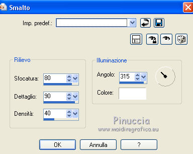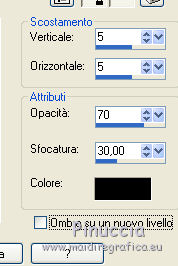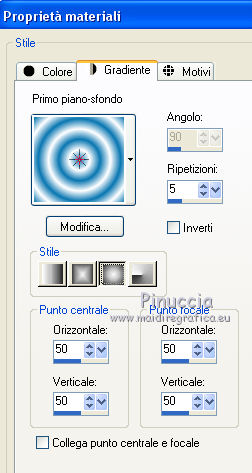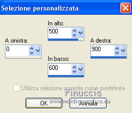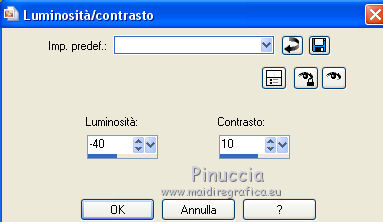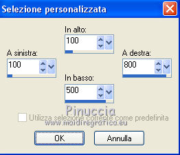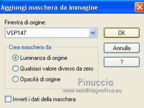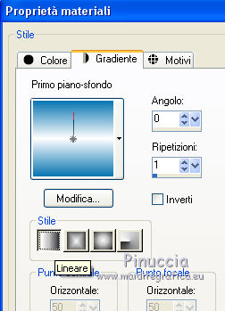 qui puoi trovare qualche risposta ai tuoi dubbi. Se l'argomento che ti interessa non è presente, ti prego di segnalarmelo. Questo tutorial è stato realizzato con PSPX8 e tradotto con PSPX7 e PSPX, ma può essere realizzato anche con le altre versioni di PSP. Dalla versione X4, il comando Immagine>Rifletti è stato sostituito con Immagine>Capovolgi in orizzontale, e il comando Immagine>Capovolgi con Immagine>Capovolgi in verticale. Nelle versioni X5 e X6, le funzioni sono state migliorate rendendo disponibile il menu Oggetti. Con la nuova versione X7, sono tornati Rifletti>Capovolgi, ma con nuove varianti. Vedi la scheda sull'argomento qui traduzione in inglese/english translation qui/here Occorrente: Materiale qui Grazie: per i tubes Colybrix e Nikita; per le maschere ValyScrapPassion. (in questa pagina trovi i links ai siti dei creatori di tubes) Filtri: se hai problemi con i filtri, consulta la mia sezione filtri qui Mehdi - Sorting Tiles qui Mura's Meister - Cloud qui Mura's Meister - Perspective Tiling qui Graphics Plus - Cross Shadow qui Filters Unlimited 2.0 qui I filtri Graphics Plus si possono usare da soli o importati in Filters Unlimited (come fare vedi qui) Se un filtro fornito appare con questa icona ![]() non esitare a cambiare modalità di miscelatura e opacità secondo i colori utilizzati. Nelle ultime versioni di PSP non c'è il gradiente di primo piano/sfondo (Corel_06_029) Puoi usare i gradienti delle versioni precedenti. Trovi qui i gradienti Corel X. Apri le maschere in PSP e minimizzale con il resto del materiale. Non dimenticare di togliere la firma prima di copiare i tubes. 1. Imposta il colore di primo piano con #0976b1, e il colore di sfondo con il colore bianco. ![]() Passa il colore di primo piano a Gradiente di primo piano/sfondo, stile Sprazzo di luce. ![]() 1. Apri una nuova immagine trasparente 900 x 600 pixels, e riempila con il gradiente.Effetti>Plugins>Mehdi - Sorting Tiles. ![]() Effetti>Effetti di bordo>Aumenta di più. 2. Attiva lo strumento Selezione ![]() (non importa il tipo di selezione impostato, perchè con la selezione personalizzata si ottiene sempre un rettangolo) clicca sull'icona Selezione personalizzata ![]() e imposta i seguenti settaggi. ![]() Livelli>Nuovo livello raster. Effetti>Plugins>Mura's Meister - Cloud. ![]() Selezione>Inverti. Effetti>Effetti 3D>Sfalsa ombra, colore nero. ![]() Ripeti l'Effetto Sfalsa ombra, verticale e orizzontale -10. Mantieni selezionato. 3. Attiva il livello inferiore. Selezione>Innalza selezione a livello. Effetti>Effetti artistici>Smalto. ![]() Selezione>Deseleziona. Regola>Messa a fuoco>Metti a fuoco. Abbassa l'opacità di questo livello al 60%. Livelli>Unisci>Unisci giù. 4. Attiva il livello superiore. Apri il tube del paesaggio e vai a Modifica>Copia. Torna al tuo lavoro e vai a Modifica>Incolla come nuovo livello. Non spostarlo. Imposta il colore di primo piano con il colore bianco. Livelli>Nuovo livello raster. Riempi il livello con il colore bianco.Livelli>Nuovo livello maschera>Da immagine. Apri il menu sotto la finestra di origine e vedrai la lista dei files aperti. Seleziona la maschera VSP147. ![]() Effetti>Effetti di bordo>Aumenta di più. Livelli>Unisci>Unisci gruppo. Livelli>Duplica. Livelli>Unisci>Unisci giù. 5. Attiva il livello inferiore, Raster 1. Selezione personalizzata ![]() ![]() Selezione>Innalza selezione a livello. Selezione>Deseleziona. Effetti>Plugins>Mura's Meister - Perspective Tiling. ![]() Effetti>Effetti di bordo>Erodi. 6. Attiva il livello superiore. Apri il tube del personaggio e vai a Modifica>Copia. Torna al tuo lavoro e vai a Modifica>Incolla come nuovo livello. Immagine>Ridimensiona, al 75%, tutti i livelli non selezionato. Regola>Messa a fuoco>Metti a fuoco. Spostalo a destra.non ho volontariamento aggiunto lo sfalsa ombra, per apprezzare meglio il talento di Colybrix nel tubare i capelli 7. Apri il tube del liocorno e vai a Modifica>Copia. Torna al tuo lavoro e vai a Modifica>Incolla come nuovo livello. Immagine>Ridimensiona, all'85%, tutti i livelli non selezionato. Tasto K sulla tastiera per attivare lo strumento Puntatore ![]() e imposta Posizione X: 34,00 e Posizione Y: 328,00. ![]() Regola>Tonalità e saturazione>Viraggio. ![]() Regola>Luminosità e contrasto>Luminosità e contrasto. ![]() Livelli>Duplica. Regola>Sfocatura>Sfocatura gaussiana - raggio 20. ![]() Livelli>Disponi>Sposta giù. 8. Attiva il livello superiore. Livelli>Nuovo livello raster. Riempi il livello con il colore bianco.Livelli>Nuovo livello maschera>Da immagine. Apri il menu sotto la finestra di origine e vedrai la lista dei files aperti. Seleziona la maschera vsp013. ![]() Immagine>Ridimensiona, 1 volte al 50% e una volta al 75%, tutti i livelli non selezionato. Regola>Messa a fuoco>Accentua messa a fuoco. Livelli>Unisci>Unisci gruppo. 9. Tasto K sulla tastiera per attivare lo strumento Puntatore ![]() e imposta Posizione X: 0,00 e Puntatore Y: 0,00. ![]() ![]() Effetti>Effetti 3D>Sfalsa ombra, colore nero. ![]() Apri il tube titre e vai a Modifica>Copia. Torna al tuo lavoro e vai a Modifica>Incolla come nuovo livello. Spostalo in mezzo al cuore.Effetti>Effetti 3D>Sfalsa ombra, colore nero. ![]() 10. Immagine>Aggiungi bordatura, 2 pixels, simmetriche, colore blu. Immagine>Aggiungi bordatura, 5 pixels, simmetriche, colore bianco. Immagine>Aggiungi bordatura, 2 pixels, simmetriche, colore blu. Selezione>Seleziona tutto. Immagine>Aggiungi bordatura, 40 pixels, simmetriche, colore bianco. Selezione>Inverti. 11. Cambia i settaggi del gradiente, stile Lineare ![]() Riempi la selezione con il gradiente.Effetti>Plugins>Graphics plus - Cross Shadow. ![]() Effetti>Effetti di trama>Veneziana. ![]() Ripeti Effetti>Effetti di trama>Veneziana. ![]() Selezione>Deseleziona. 13. Immagine>Aggiungi bordatura, 2 pixels, simmetriche, colore blu. Immagine>Aggiungi bordatura, 5 pixels, simmetriche, colore bianco. Immagine>Aggiungi bordatura, 2 pixels, simmetriche, colore blu. 14. Immagine>Ridimensiona, 900 pix