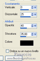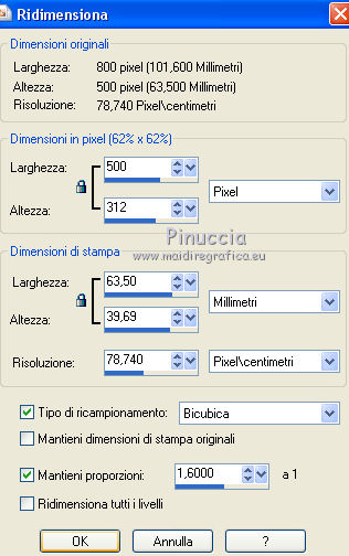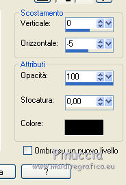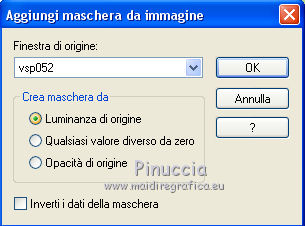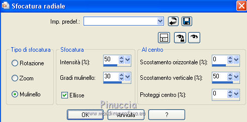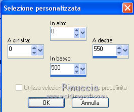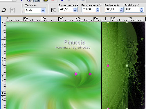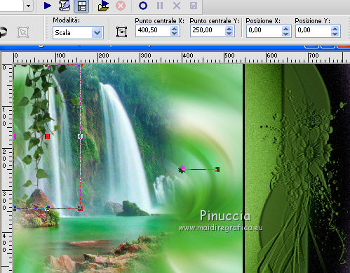 qui puoi trovare qualche risposta ai tuoi dubbi. Se l'argomento che ti interessa non è presente, ti prego di segnalarmelo. Questo tutorial è stato realizzato con PSPX8 e tradotto con PSPX3 e PSPX, ma può essere realizzato anche con le altre versioni di PSP. Dalla versione X4, il comando Immagine>Rifletti è stato sostituito con Immagine>Capovolgi in orizzontale, e il comando Immagine>Capovolgi con Immagine>Capovolgi in verticale. Nelle versioni X5 e X6, le funzioni sono state migliorate rendendo disponibile il menu Oggetti. Con la nuova versione X7, sono tornati Rifletti>Capovolgi, ma con nuove varianti. Vedi la scheda sull'argomento qui traduzione in inglese/english translation qui/hereOccorrente: Materiale qui Per i tubes grazie Colybrix e ValyScrapPassion. (in questa pagina trovi i links ai siti dei creatori di tubes) Filtri: se hai problemi con i filtri, consulta la mia sezione filtri qui Mehdi - Wavy Lab 1.1 qui ![]() non esitare a cambiare modalità di miscelatura e opacità secondo i colori utilizzati. Apri la maschera in PSP e minimizzala con il resto del materiale (non dimenticare di cancellare le firme dei tubes). Imposta il colore di primo piano con #669c35, e il colore di sfondo con #ffffff. ![]() 1. Apri una nuova immagine trasparente 800 x 500 pixels, e riempila con il colore bianco.Livelli>Nuovo livello raster. Selezione>Seleziona tutto. Apri il tube del paesaggio e vai a Modifica>Copia. Torna al tuo lavoro e vai a Modifica>Incolla nella selezione. Selezione>Deseleziona. 2. Effetti>Effetti di immagine>Motivo unico, con i settaggi standard. ![]() Effetti>Effetti di distorsione>Coordinate polari. ![]() Effetti>Effetti di immagine>Motivo unico, con i settaggi precedenti. 3. Regola>Sfocatura>Sfocatura radiale. ![]() Livelli>Unisci>Unisci giù. 4. Livelli>Nuovo livello raster. Riempi con il colore di primo piano.Livelli>Disponi>Porta sotto. Attiva il livello superiore. Cambia la modalità di miscelatura di questo livello in Luce netta. Livelli>Unisci>Unisci giù. 5. Livelli>Nuovo livello raster. Effetti>Plugins>Mehdi - Wavy Lab 1.1. Questo filtro crea gradienti con i colori della paletta : il primo è il colore di sfondo, il secondo quello di primo piano. Dei due colori creati dal filtro, cambia il terzo colore con il colore nero #000000 ![]() Regola>Aggiungi/Rimuovi disturbo>Aggiungi disturbo. ![]() 6. Attiva lo strumento Selezione ![]() (non importa il tipo di selezione impostato, perchè con la selezione personalizzata si ottiene sempre un rettangolo) clicca sull'icona Selezione personalizzata ![]() e imposta i seguenti settaggi. ![]() Premi sulla tastiera il tasto CANC ![]() Selezione>Deseleziona. Effetti>Effetti 3D>Sfalsa ombra, colore nero. ![]() Livelli>Nuovo livello raster. Riempi con il colore di primo piano.Livelli>Nuovo livello maschera>Da immagine. Apri il menu sotto la finestra di origine e vedrai la lista dei files aperti. Seleziona la maschera vsp052 ![]() Regola>Messa a fuoco>Accentua messa a fuoco. Livelli>Unisci>Unisci gruppo. 7. Immagine>Ridimensiona, 500 pixels di larghezza, tutti i livelli non selezionato. ![]() Immagine>Ruota per gradi - 90 gradi a destra ![]() Oggetti>Allinea>Superiore. Oggetti>Allinea>Destra se stai lavorando con una versione precedente che non dispone del menu Oggetti, con lo strumento Spostamento sposta l'immagine in alto a destraoppure, con lo strumento Puntatore ![]() imposta Posizione X: 585,00 e Posizione Y: 0,00 ![]() Effetti>Effetti 3D>Sfalsa ombra, con i settaggi precedenti. ![]() Livelli>Duplica. Livelli>Unisci>Unisci giù. 8. Modifica>Incolla come nuovo livello (il tuo paesaggio è sempre in memoria) Immagine>Rifletti. Immagine>Ridimensiona, all'80%, tutti i livelli non selezionato. (adatta al tuo paesaggio, in modo da poter vedere un po' di sfondo) Spostalo a sinistra.![]() Facoltativo: Livelli>Duplica. Livelli>Unisci>Unisci giù. 9. Apri il tube dell'edera - feuillage1VSP - e vai a Modifica>Copia. Torna al tuo lavoro e vai a Modifica>Incolla come nuovo livello. Oggetti>Allinea>Superiore. Oggetti>Allinea>Sinistra o, con lo strumento Puntatore ![]() imposta Posizione X e Posizione Y a 0,00 ![]() 10. Apri il tube della donna e vai a Modifica>Copia. Torna al tuo lavoro e vai a Modifica>Incolla come nuovo livello. Immagine>Ridimensiona, al 60%, tutti i livelli non selezionato. Immagine>Rifletti. Sposta / il tube a destra.![]() Effetti>Effetti 3D>Sfalsa ombra, colore nero. ![]() 11. Apri il tube titre e vai a Modifica>Copia. Torna al tuo lavoro e vai a Modifica>Incolla come nuovo livello. Spostalo dove preferisci, o vedi il mio esempio.Livelli>Unisci>Unisci tutto. Modifica>Copia. 12. Apri il tube "cadre" (colorizza se necessario). Livelli>Nuovo livello raster. Riempi con il colore di primo piano.Livelli>Disponi>Porta sotto. Selezione>Seleziona tutto. Selezione>Modifica>Contrai - 50 pixels. Premi sulla tastiera il tasto CANC. Attiva il livello superiore. Cambia la modalità di miscelatura di questo livello in Luminanza (esistente) 13. Modifica>Incolla come nuovo livello (il lavoro in memoria). 14. Apri il tube deco di Colybrix, e vai a Modifica>Copia. Torna al tuo lavoro e vai a Modifica>Incolla come nuovo livello. Immagine>Ridimensiona, al 50%, tutti i livelli non selezionato. Spostalo in basso a sinistra.Effetti>Effetti 3D>Sfalsa ombra, con i settaggi precedenti. ![]() Livelli>Unisci>Unisci tutto. Firma il tuo lavoro e salva in formato jpg. Versione con tubes di Cal ![]() Merci![]() Puoi scrivermi se hai problemi o dubbi, o trovi un link che non funziona, o soltanto per un saluto. 13 Marzo 2020 |