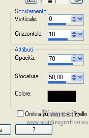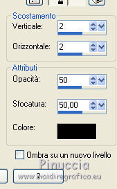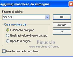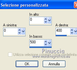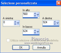 qui puoi trovare qualche risposta ai tuoi dubbi. Se l'argomento che ti interessa non è presente, ti prego di segnalarmelo. Questo tutorial è stato realizzato con PSPX8 e tradotto con PSPX3 e PSPX, ma può essere realizzato anche con le altre versioni di PSP. Dalla versione X4, il comando Immagine>Rifletti è stato sostituito con Immagine>Capovolgi in orizzontale, e il comando Immagine>Capovolgi con Immagine>Capovolgi in verticale. Nelle versioni X5 e X6, le funzioni sono state migliorate rendendo disponibile il menu Oggetti. Con la nuova versione X7, sono tornati Rifletti>Capovolgi, ma con nuove varianti. Vedi la scheda sull'argomento qui traduzione in inglese/english translation qui/here Le vostre versioniOccorrente: Materiale qui Per i tubes e la maschera grazie Colybrix e ValyScrapPassion (in questa pagina trovi i links ai siti dei creatori di tubes) Filtri: se hai problemi con i filtri, consulta la mia sezione filtri qui Mehdi - Kaleidoscope qui Mura's Meister - Perspective Tiling qui ![]() non esitare a cambiare modalità di miscelatura e opacità secondo i colori utilizzati. Non dimenticare di cancellare le firme sui tubes. Apri la maschera in PSP e minimizzala con il resto del materiale. Imposta il colore di primo piano con #e01500, e il colore di sfondo con #fdc920. ![]() 1. Apri una nuova immagine trasparente 800 x 500 pixels, e riempila con il colore di primo piano.Selezione>Seleziona tutto. Apri il tube del paesaggio e vai a Modifica>Copia. Torna al tuo lavoro e vai a Modifica>Incolla nella selezione. Selezione>Deseleziona. Effetti>Effetti di immagine>Motivo unico. ![]() Modifica>Ripeti Motivo unico. 2. Regola>Sfocatura>Sfocatura radiale. ![]() Effetti>Effetti di bordo>Aumenta di più. 3. Effetti>Plugins>Mehdi - Kaleidoscope 2.1. ![]() Effetti>Effetti di bordo>Aumenta. Attiva lo strumento Selezione ![]() (non importa il tipo di selezione impostato, perchè con la selezione personalizzata si ottiene sempre un rettangolo) clicca sull'icona Selezione personalizzata ![]() e imposta i seguenti settaggi. ![]() Selezione>Innalza selezione a livello. Selezione>Deseleziona. 4. Effetti>Effetti geometrici>Cerchio. ![]() Livelli>Duplica. Immagine>Rifletti. Livelli>Unisci>Unisci giù. 5. Selezione>Seleziona tutto. Selezione>Mobile. Selezione>Immobilizza. Selezione>Modifica>Contrai - 30 pixels. Modifica>Incolla nella selezione (il tube del paesaggio è sempre in memoria). Selezione>Deseleziona. 6. Effetti>Effetti 3D>Sfalsa ombra, colore nero. ![]() Ripeti l'Effetto Sfalsa ombra verticale e orizzontale -15. 7. Imposta il colore di primo piano con il colore bianco. Livelli>Nuovo livello raster. Riempi il livello con il colore bianco.Livelli>Nuovo livello maschera>Da immagine. Apri il menu sotto la finestra di origine e vedrai la lista dei files aperti. Seleziona la maschera VSP239. ![]() Immagine>Rifletti. Immagine>Capovolgi. Effetti>Effetti di bordo>Aumenta. Livelli>Unisci>Unisci gruppo. 8. Immagine>Ridimensiona, al 50%, tutti i livelli non selezionato. Oggetti>Allinea>Sinistra Oggetti>Allinea>Superiore se stai usando una versione precedente che non rende disponibile il menu Oggetti, attiva lo strumento Puntatore ![]() e imposta Posizione X e Y a 0,00. ![]() 9. Livelli>Duplica. Immagine>Rifletti. Livelli>Unisci>Unisci giù. 10. Apri il tube delle foglie d'autunno e vai a Modifica>Copia. Torna al tuo lavoro e vai a Modifica>Incolla come nuovo livello. Spostalo completamente a sinistra.Effetti>Effetti 3D>Sfalsa ombra, colore nero. ![]() Livelli>Duplica. Immagine>Rifletti. Livelli>Unisci>Unisci giù. 11. Attiva il livello inferiore, Raster 1. Modifica>Copia. Per i bordi, imposta nuovamente il colore di primo piano con il colore #e01500. ![]() Immagine>Aggiungi bordatura, 2 pixels, simmetriche, colore di primo piano. Immagine>Aggiungi bordatura, 2 pixels, simmetriche, colore di sfondo. Immagine>Aggiungi bordatura, 2 pixels, simmetriche, colore di primo piano. 12. Selezione>Seleziona tutto. Immagine>Aggiungi bordatura, 50 pixels, simmetriche, colore bianco. Selezione>Inverti. Modifica>Incolla nella selezione (lo sfondo in memoria). Effetti>Effetti 3D>Smusso a incasso. ![]() Selezione>Deseleziona. 13. Immagine>Aggiungi bordatura, 2 pixels, simmetriche, colore di primo piano. Immagine>Aggiungi bordatura, 2 pixels, simmetriche, colore di sfondo. Immagine>Aggiungi bordatura, 2 pixels, simmetriche, colore di primo piano. 14. Selezione personalizzata ![]() ![]() Selezione>Innalza selezione a livello. Selezione>Deseleziona. Effetti>Plugins>Mura's Meister - Perspective Tiling. ![]() Effetti>Effetti di bordo>Aumenta. Effetti>Effetti 3D>Sfalsa ombra, colore nero. ![]() 15. Apri il tube del cervo e vai a Modifica>Copia. Torna al tuo lavoro e vai a Modifica>Incolla come nuovo livello. Immagine>Ridimensiona, al 45%, tutti i livelli non selezionato. Regola>Messa a fuoco>Metti a fuoco. Strumento Puntatore ![]() e imposta Posizione X: 65,00 e Posizione Y: 245,00 ![]() Effetti>Effetti 3D>Sfalsa ombra. ![]() 16. Apri il tube della donna e vai a Modifica>Copia. Torna al tuo lavoro e vai a Modifica>Incolla come nuovo livello. Immagine>Ridimensiona, al 70%, tutti i livelli non selezionato. Regola>Messa a fuoco>Metti a fuoco. Strumento Puntatore ![]() e imposta Posizione X: 470,00 e Posizione Y: 120,00 ![]() Effetti>Effetti 3D>Sfalsa ombra, con i settaggi precedenti. 17. Apri il tube del titolo "titre" e vai a Modifica>Copia. Torna al tuo lavoro e vai a Modifica>Incolla come nuovo livello. Spostalo dove preferisci.Immagine>Aggiungi bordatura, 2 pixels, simmetriche, colore di sfondo. 18. Immagine>Ridimensiona, 900 pixels di larghezza, tutti i livelli selezionato. Firma il tuo lavoro e salva in formato jpg. Versione con tubes di Tineke e Sonia ![]() Le vostre versioni Grazie ![]() ![]() Gloria ![]() Puoi scrivermi se hai problemi o dubbi, o trovi un link che non funziona, o soltanto per un saluto. 31 Ottobre 2020 |