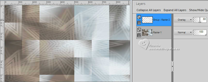Change the blend Mode of this layer to Overlay and reduce the opacity to 50%.