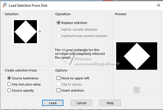 23. Selections>Load/Save Selection>Load Selection from Disk.
