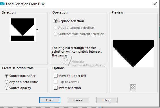 14. Selections>Load/Save Selection>Load Selection from Disk.