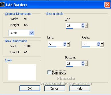 Image>Add borders, symmetric not checked, background color.