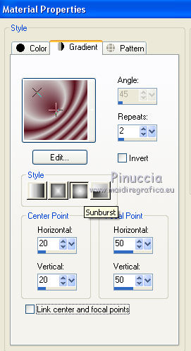 2. Set your foreground color to a Foreground/Background Gradient, style Sunburst.