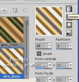 Passa il colore di primo piano a Gradiente e seleziona il gradiente alive @qua, stile Lineare.