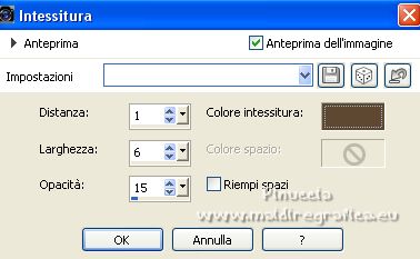 Effetti>Effetti di trama>Intessitura - colore intessitura: colore di sfondo.