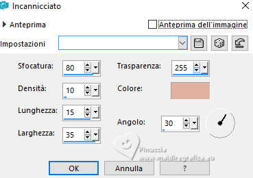 30. Effetti>Effetti 3D>Sfalsa ombra, con i settaggi precedenti.
