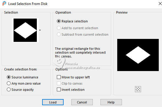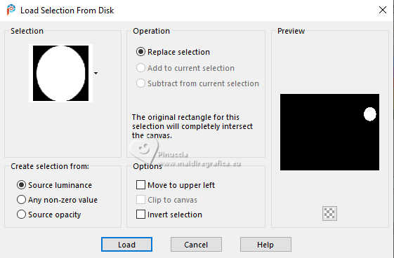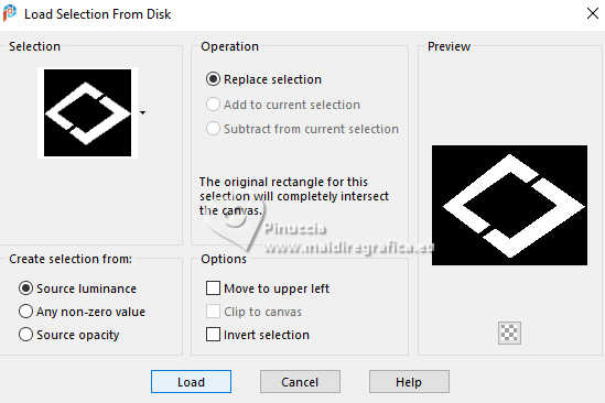 19. Selections>Load/Save Selection>Load Selection from Disk.