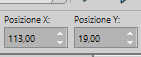 Imposta Posizione X: 113,00 e Posizione Y: 19,00.