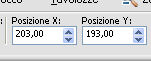 Imposta Posizione X: 203,00 e Posizione Y: 193,00.
