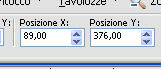 Imposta Posizione X: 89,00 e Posizione Y: 376,00.