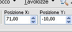 Imposta Posizione X: 71,00 e Posizione Y: -10,00.
