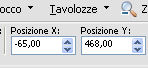 e imposta Posizione X: -65,00 e Posizione Y: 468,00.