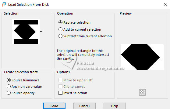 51. Selections>Load/Save Selection>Load Selection from Disk.