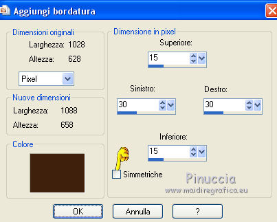 27. Immagine>Aggiungi bordatura, 2 pixels, simmetriche, colore di sfondo #3e210f.
