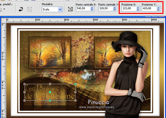 e imposta Posizione X: 123,00 - Posizione Y: 419,00.