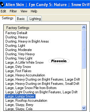 Effetti>Plugins>Alien Skin Eye Candy 5 Nature - Snow Drift: