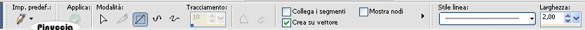 Attiva lo strumento Penna (o premi il tasto V sulla tastiera) con i seguenti settaggi.