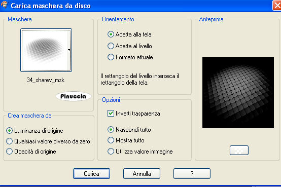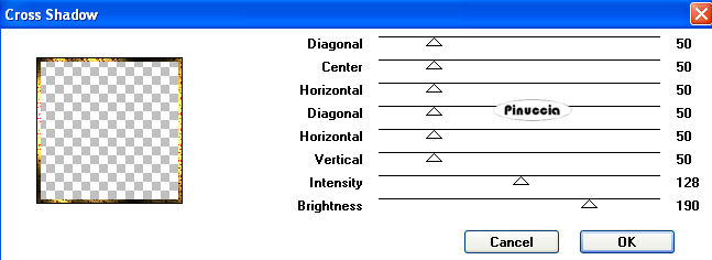 qui puoi trovare qualche risposta ai tuoi dubbi. Se l'argomento che ti interessa non è presente, ti prego di segnalarmelo. Per tradurre questo tutorial ho usato PSP X. Occorrente: Materiale qui Filtri. Nik Software - Color Efex Pro qui Graphics Plus - Cross Shadow qui Metti la maschera nella cartella Maschere. Apri il resto del materiale in PSP, compreso il motivo "Textur" che troverai nella lista dei motivi disponibili quando ti servirà. 1. Imposta il colore di primo piano con il nero, e il colore di sfondo con il bianco. Apri una nuova immagine trasparente 500 x 500 pixels, e riempila con il colore nero.Livelli>Nuovo livello raster. Riempi il nuovo livello con il colore bianco (tasto destro del mouse).Livelli>Carica/Salva maschera>Carica maschera da disco. Cerca e carica la maschera 34_sharev_msk. ![]() Livelli>Elimina e rispondi sì alla domanda Unire la maschera nel livello corrente. ![]() Livelli>Unisci>Unisci gruppo. Rinomina questo livello "maschera". 2. Apri il tube dei dai trasparenti "NS_02_0301_10" e vai a Modifica>copia. Torna al tuo lavoro e vai a Modifica>Incolla come nuovo livello. Immagine>Ridimensiona, al 50%, tutti i livelli non selezionato. Regola>Messa a fuoco>Metti a fuoco. Livelli>Duplica. Livelli>Unisci>Unisci giù. Sposta il tube nell'angolo in basso a destra.3. Apri il tube del giocatore "NS_43_1802_10" e vai a Modifica>copia. Torna al tuo lavoro e vai a Modifica>Incolla come nuovo livello. Immagine>Ridimensiona, al 63%, tutti i livelli non selezionato. Regola>Messa a fuoco>Metti a fuoco. Sposta il tube a sinistra.4. Apri il tube con la testa "NS_42_1802_10" e vai a Modifica>Copia. Torna al tuo lavoro e vai a Modifica>Incolla come nuovo livello. Immagine>Rifletti. Sposta il tube un po' più in alto e a destra.Cambia la modalità di miscelatura di questo livello in Sovrapponi. ![]() 4. Immagine>Dimensione tela, 525 x 525 pixels. ![]() Attiva il livello di sfondo. Selezione>Seleziona tutto. Selezione>mobile. Selezione>Immobilizza. Selezione>Inverti. Attiva il livello del giocatore (il tube di sinistra) e premi sulla tastiera il tasto CANC. In questo modo avrai eliminato la parte di tube rimasta visibile nel bordo trasparente. Mantieni selezionato. 5. Livelli>Nuovo livello raster. Livelli>Disponi>Porta sotto. Riempi la selezione con il colore nero.Livelli>Nuovo livello raster. Passa il colore di primo piano a Motivi e nella lista dei motivi vedrai anche le immagini aperte in PSP, tra queste il motivo "Textur". Seleziona il motivo con i seguenti settaggi. ![]() Riempi la selezione con questo motivo.Cambia la modalità di miscelatura del livello in Luce netta. Effetti>Plugins>Nik Software - Color Efex 3.0 Burnt Sienna. ![]() Effetti>Plugins>Graphics Plus - Cross Shadow, con i settaggi standard. ![]() Rinomina questo livello "bordo". 6. Scrivi un testo sull'immagine e aggiungi il tuo nome e/o il tuo watermark su un nuovo livello. Se non vuoi animare: Livelli>Unisci>Unisci tutto e salva in formato jpg. 7. Se vuoi animare, non unire i livelli e vai a Modifica>Copia Unione. Apri Animation Shop e vai a Modifica>Incolla>Incolla come nuova animazione. Torna in PSP. Attiva il livello "bordo". Effetti>Plugins>Graphics Plus - Cross Shadow. ![]() Attiva il livello "maschera". Effetti>Plugins>Nik Software - Color Efex 3.0 Colorize e - a destra - imposta un colore a tua scelta: ![]() Modifica>Copia Unione. Torna in Animation Shop e vai a Modifica>Incolla>Incolla dopo il fotogramma corrente. Di nuovo in PSP. Annulla gli ultimi tre passaggi. Nel dettaglio: Modifica>Annulla azione Color Efex. Modifica>Annulla azione Selezione livello. Modifica>Annulla azione Graphics Plus. e sei nuovamente sul livello "bordo". più velocemente più cliccare tre volte sull'icona corrispondente nella barra superiore degli strumenti. ![]() Effetti>Plugins>Graphics Plus - Cross Shadow. ![]() Attiva il livello "maschera". Effetti>Plugins>Nik Software - Color Efex 3.0 Colorize - e imposta un altro colore: ![]() Modifica>Copia Unione. Torna in Animation Shop e vai a Modifica>Incolla>Incolla dopo il fotogramma corrente. Ed ecco la tua animazione composta da 3 fotogrammi. Modifica>Seleziona tutto. Animazione>Proprietà fotogramma e imposta la velocità a 20. ![]() Controlla il risultato cliccando su Visualizza e salva in formato gif.![]() Se hai problemi o dubbi, o trovi un link non funzionante, o anche soltanto per un saluto, scrivimi 9 marzo 2010 |