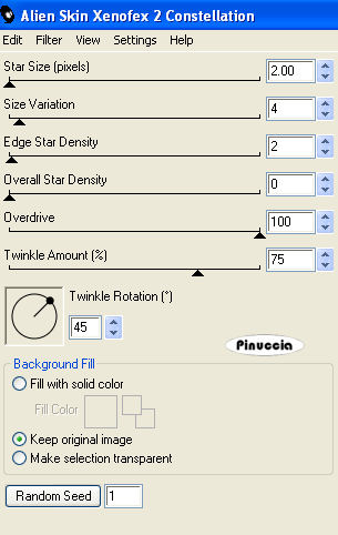Ripeti l'Effetto Constellation, con gli stessi settaggi, ma cliccando una volta su Random Seed.