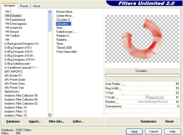 12. Effets>Modules Externes>Filters Unlimited 2.0 - VM Distortion - Circulator