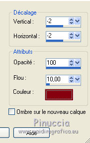 Effets>Effets 3D>Ombre portée, couleur d'avant plan du début #870310.