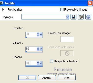 30. Effets>Effets de textures>Textile - couleur du tissage blanche.