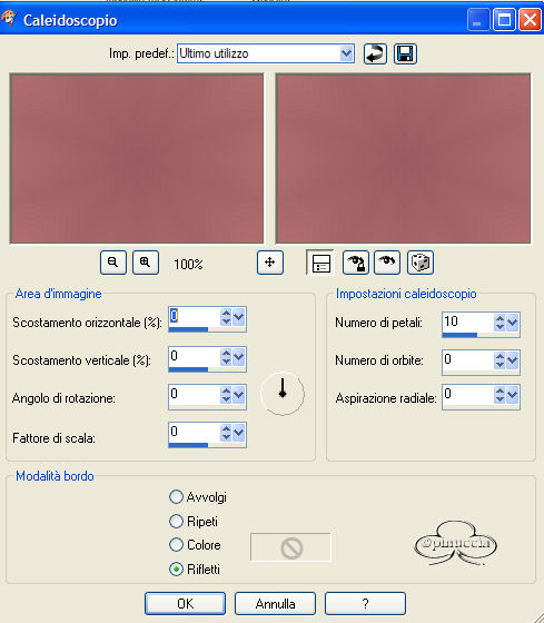 Effetti>Effetti di riflesso>Caleidoscopio, con questi settaggi: